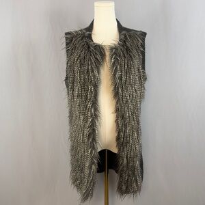 H&M Black and Gray Dramatic Textured Statement Vest Cascading Feather & Fringe