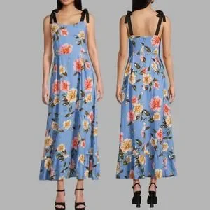 Keywords: GB Maxi Dress, Floral Maxi Dress, Blue Floral Dress, Tie Shoulder Dress, Ruffle Hem Dress, Summer Dress, Garden Party Dress, Beach Vacation Dress, Casual Maxi Dress, Women's Maxi Dress, XL Maxi Dress, Flowy Dress, Bohemian Dress, Cottagecore Dress
