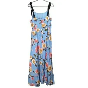 GB Floral Print Grosgrain Tie Maxi Dress Sz Xl Blue Floral Lined Brunch