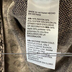Chicos Women's Thick Long Cardigan Medium Brown Animal Print Open Fringe Boho Warm Coatigan