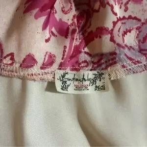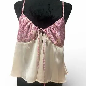 Gorgeous silky, printed cups in a soft floral design (cream, magenta, and pink hues).