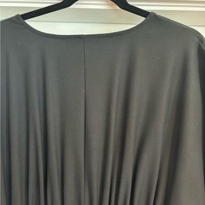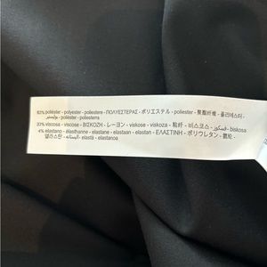 Zara black midi dress XXL cinches at the waist V-neck in front Two side pockets No inside liner The arms have three buttons as shown in the photos Brand new never worn with tags 63% polyester, 33% viscose and 4% percent elastin dress refer to all the photos for the description