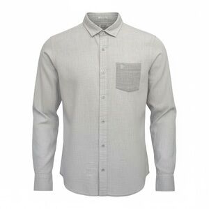 21” armpit to armpit. 100% Cotton. Classic light gray shirt with button-down design. Features a chest pocket. Ideal for casual wear.