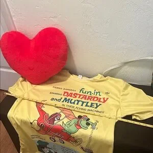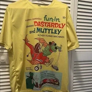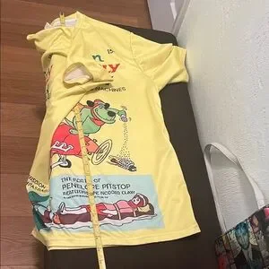 Bright yellow t-shirt featuring a fun cartoon graphic. Perfect for casual wear.