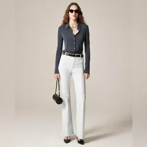Designed to sit right on the waistline, it's slim through the hip and thigh and kicks out into a subtly dramatic flare. It comes with a leg-lengthening 32" inseam—in other words, we recommend wearing these with your favorite pair of heels to avoid any dragging. We also added subtle shadow pockets and finished it in soft, suede-like chino fabric with just a touch of stretch, so it's the ideal pair for effortless day-to-night dressing.