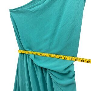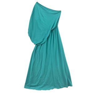 Tyche Grecian Goddess Maxi Dress Teal Draped One Shoulder Formal Gown Size L
