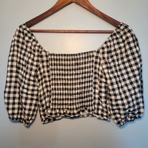 Kirious Black & White Gingham Cinch Tie Crop With Short Puff Sleeve Size Medium