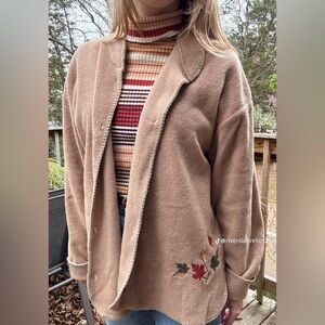 Attraction Fleece Embroidered Leaves Fall Button Up Light Jacket