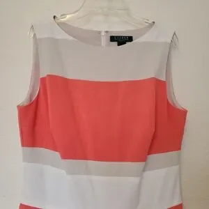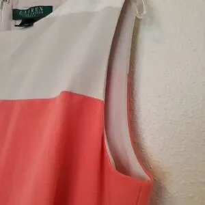 Lauren Ralph Lauren Dress Sleeveless Coral Beige Pleated Women’s Size 10 Lined