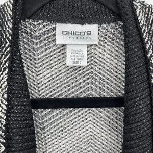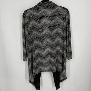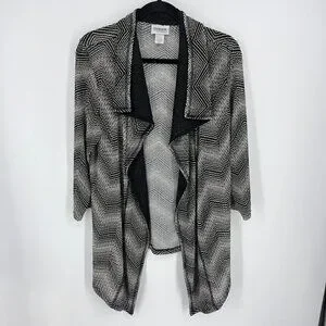 Chicos Travelers Chevron Print Mesh Open Cardigan Size L Black White Lightweight
