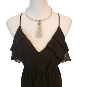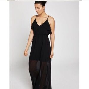 BCBG Generation Black Maxi Dress Ruffle Sheer Bottom V Neck Sleeveless Maxi NWT
