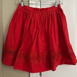Women's Red Skater Skirt Lace Trim Pleated Flounce Fit Pockets Size M