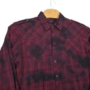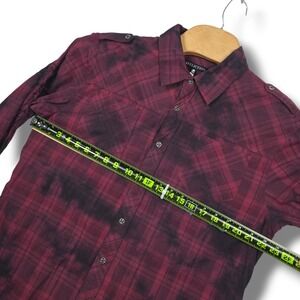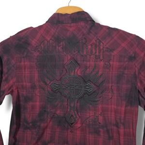 Affliction Shirt Men's XL Maroon Plaid Cross Wings Embroidery Button Up MMA Y2K