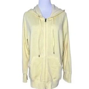 French Laundry Yellow Hoodie Zip Front Jacket Sweatshirt Fleece XL Casual NWT