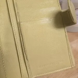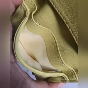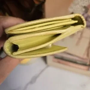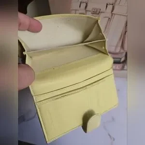 Wallet is preloved in good used condition. Shows some minor staining and residue, scratches at hardware, rubbing at the edges. Stains/marks are not dry food or ketchup. I tried to clean it but not enough crafty for cleaning bags and wallets.
