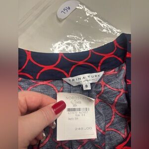 Trina Turk Dress Sleeveless Sheath Short Navy Blue Red Circles Size 8 Medium New