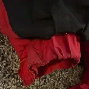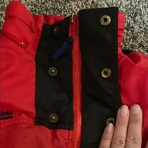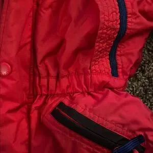 Stylish Columbia boys jacket. Bright red with black accents. Features 2 zip pockets, 2 open pockets and elastic waist.
