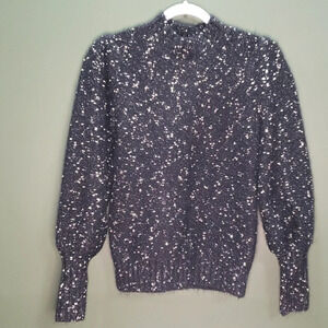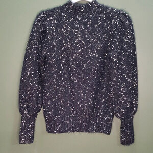 Ann Taylor Factory Balloon Sleeve Sweater Women's Size XS Mock Neck Black with Flecks of Metallic Gold