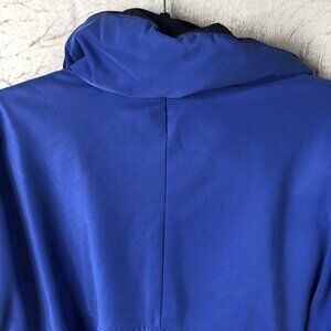 Color: Royal blue body with navy stand collar and shoulder accents, plus tonal blue embroidery.