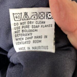 Care instructions (per tag): machine wash at 40°C, do not dry clean, use pure soap flakes not biological detergents, and hang in a ventilated room when damp.