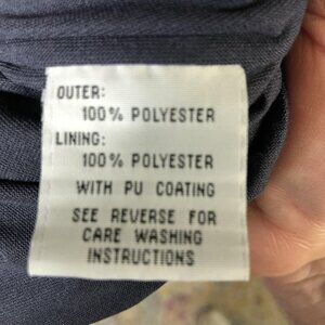 Material: Outer 100% polyester; lining 100% polyester with PU coating, per inner tag.