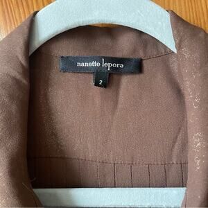 Nanette Lepore Fluted Sleeve Shimmer Brown Button Down Blouse