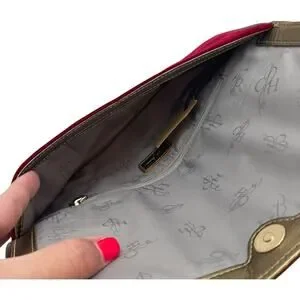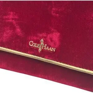 Cole Haan Masquerade Envelope Clutch Velvet Leather Red Gold