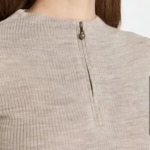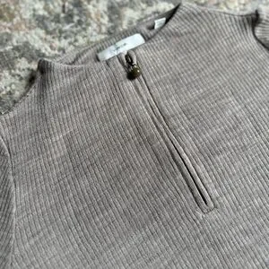 Vince Lightweight Ribbed Wool Blend Quarter Zip Sweater Pullover Size Small Heather Birch
