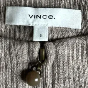 Vince Ribbed Wool Blend Quarter Zip Sweater Pullover Size Small Heather Birch