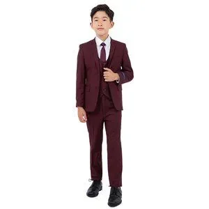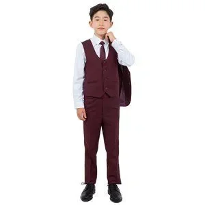 Perry Ellis Boys Burgundy Suit, Solid 5-Piece Notch Lapel