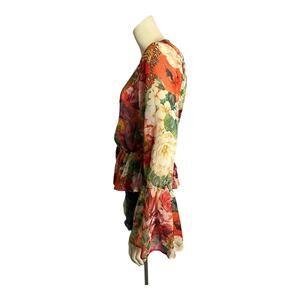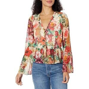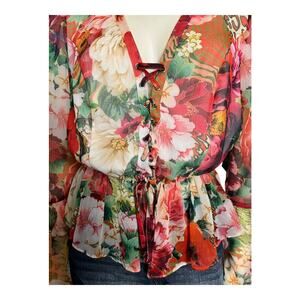 NWT Guess Long Sleeve Floral Blouse Peony XS Boho V-neck Poet Sleeve Cottage