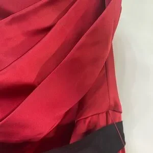 Strapless Red Party Prom Dress Sz 6 Black Sash Short Sexy Pleated Bodice 7” Slit