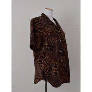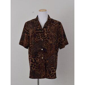 Vintage 90s Brown Jungle Floral Blouse size L