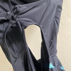 Cusphe One -Peice Swimsuit Size Large NWT Cut Out Black Floral Stretch Swim