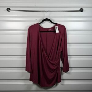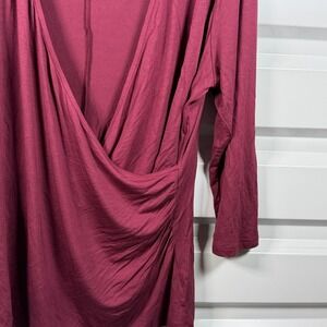 Lane Bryant Women Plus 18/20 Burgundy Surplice Wrap Ruched Long Sleeve Top m5513