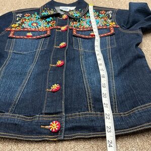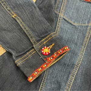 DG2 Diane Gilman Denim Jacket Sz XS Beaded Southwestern Faux Turquoise