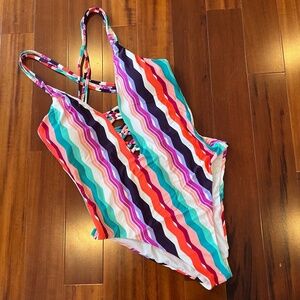 New NWT Bar III Multicolor Swimsuit Criss-Cross Waves One-Piece Swim Size Large