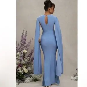 Club L London Divine timing maternity cape sleeves maxi dress in poweder blue