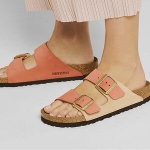 Experience unmatched comfort with these vibrant coral Birkenstock sandals. Ideal for casual wear.