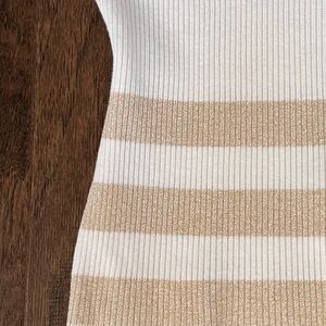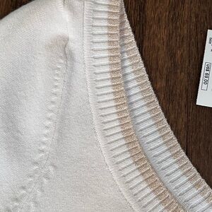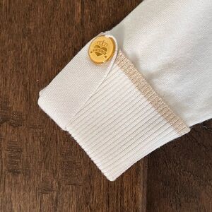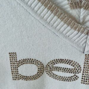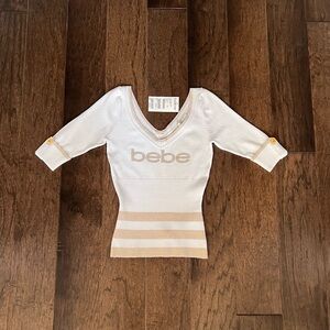 NWT Bebe White and Gold Rhinestone 3/4 sleeve V-Neck Knit Top Fitted Sweater S M