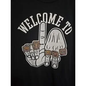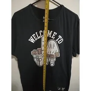 Nike 'Welcome to LA' Kobe Bryant LA Lakers Shirt features the player's name and team logo on a black shirt. The shirt celebrates Kobe Bryant's five championship rings with the Los Angeles Lakers. It is officially licensed by the National Basketball Association (NBA) and is sized large. Made in China.