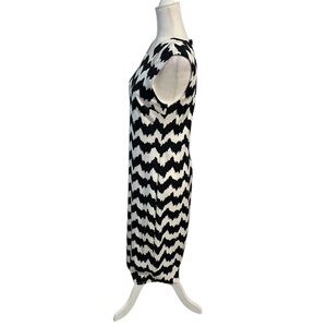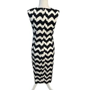 Carmen Marc Valvo Black and White Sleeveless Sheath Dress Size Medium Chevron