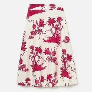 Tara Jarmon NWT Size 36 EU/US 4 Jeanette Ecru Magenta Floral Print A-Line Skirt