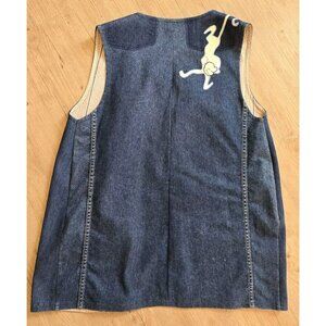 Handmade Vintage 80's Dark Wash Upcycled Denim Patchwork Cute Monkeys Vest L/XL