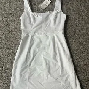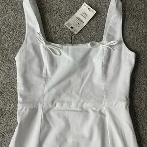 Chic white mini dress with a sleeveless design. Perfect for casual outings or special events.
