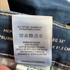 Hepburn is a vintage high-rise that is fitted through the waist and seat, tapering outward from the thigh for a wide leg with a 32' inseam.