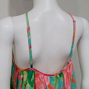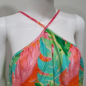 Bright and just right, this flowing rainbow palm midi dress is a need not a want! A flattering high neck meets adjustable straps to ensure the perfect fit. The high-low hem adds dimension making this special enough for all this seasons occasions.