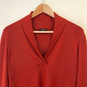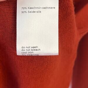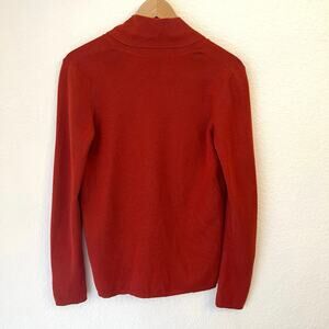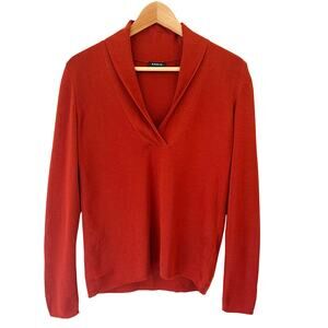 AKRIS Cashmere Silk Sweater Womens 10 M Shawl Collar Quiet Luxury Rust Orange