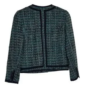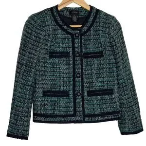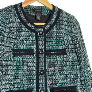 J.CREW Tweed Fanfare Peacock Cropped Blazer Jacket Green Black Size 0