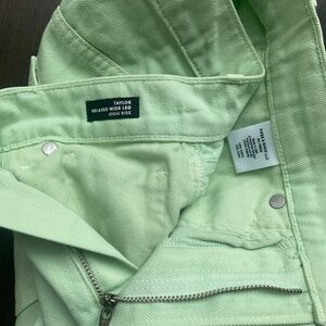 Veronica Beard Jeans Taylor Relaxed Wide Leg Raw Hem Pistachio Green